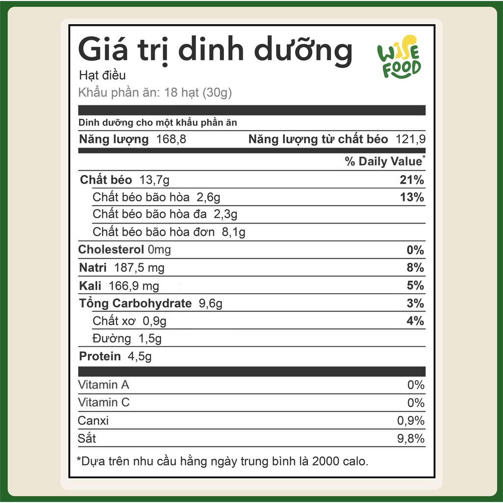 💥 Sản phẩm Hạt Điều sấy mộc Wise Food 100% từ thiên nhiên, không sử dụng chất bảo quản, gia vị. Hạt điều đã sấy mộc, có thể ăn trực tiếp